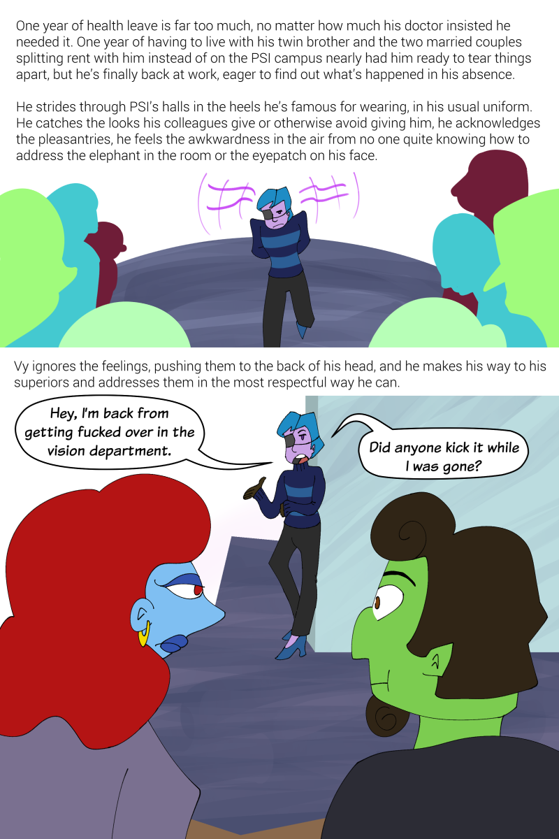 “Hey, I’m back from getting fucked over in the vision department. Did anyone kick it while I was gone?”