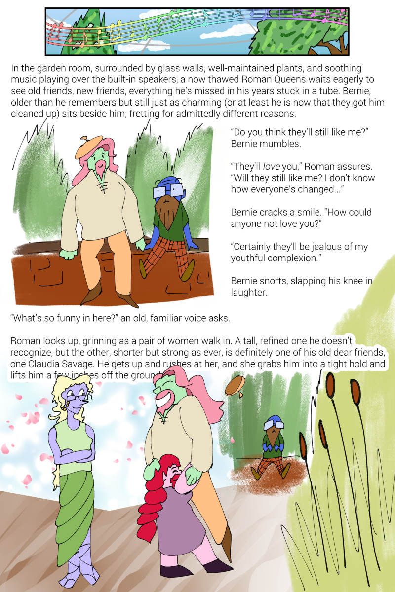 speakers, a now thawed Roman Queens waits eagerly to see old friends,